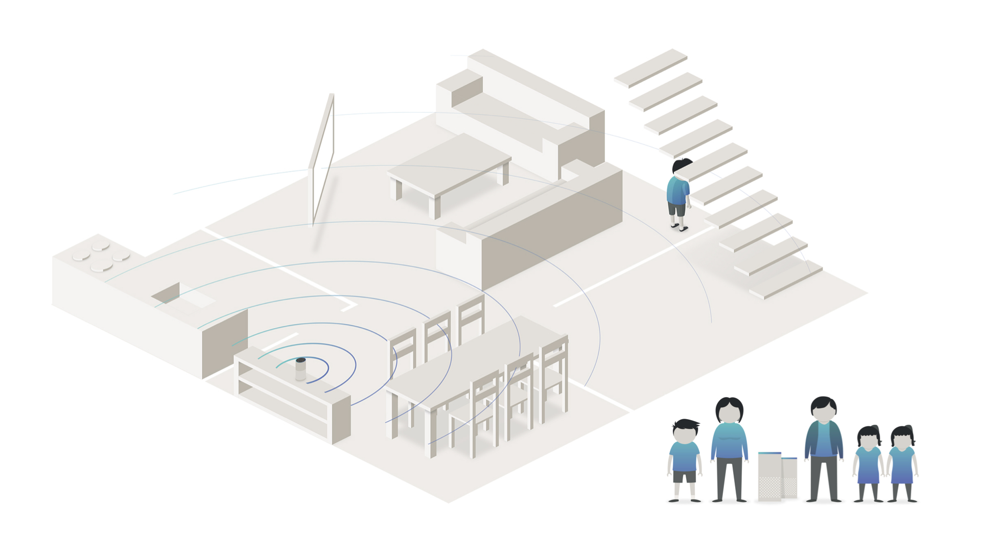 Location: The middle of her living space so she had the biggest range to use the device
